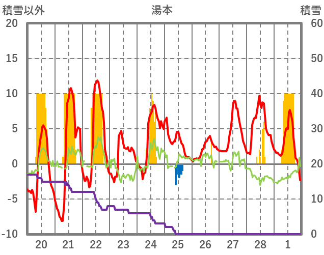 | 日 | 時 | 気温 | 降水 | 風向/風速 | 日照 | 積雪 | 降雪 |