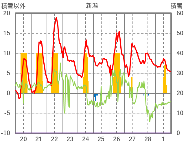 | 日 | 時 | 気温 | 降水 | 風向/風速 | 日照 | 積雪 | 降雪 |