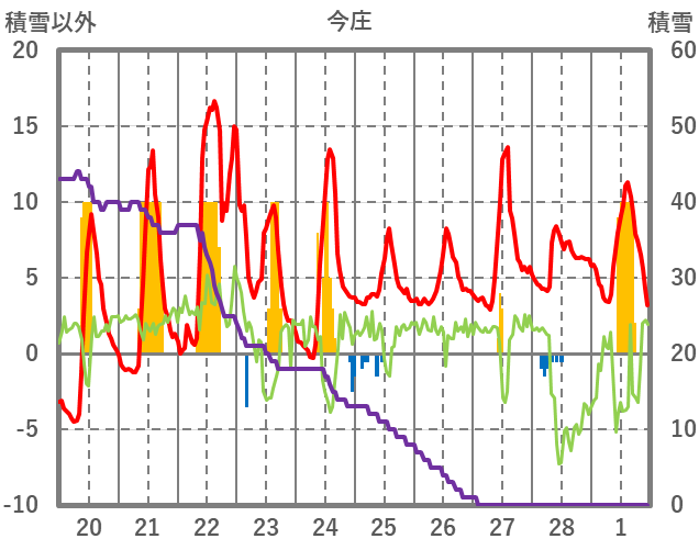 | 日 | 時 | 気温 | 降水 | 風向/風速 | 日照 | 積雪 | 降雪 |