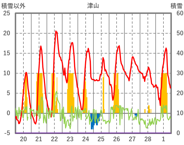 | 日 | 時 | 気温 | 降水 | 風向/風速 | 日照 | 積雪 | 降雪 |