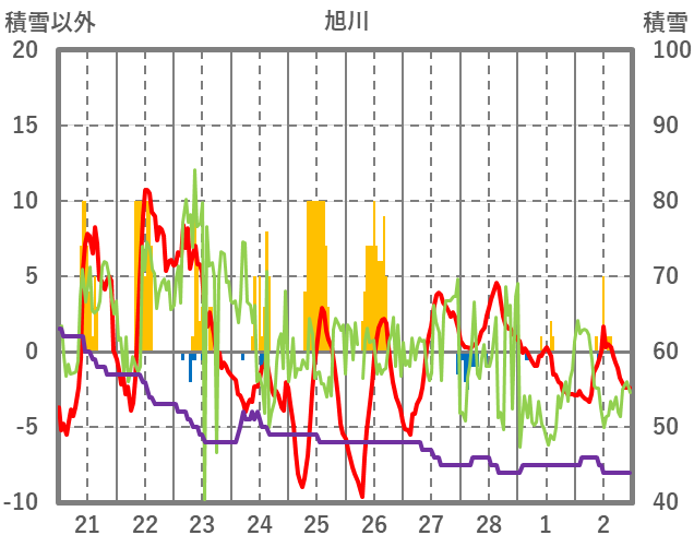 | 日 | 時 | 気温 | 降水 | 風向/風速 | 日照 | 積雪 | 降雪 |