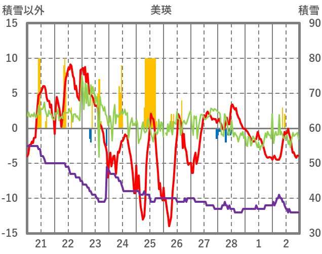 | 日 | 時 | 気温 | 降水 | 風向/風速 | 日照 | 積雪 | 降雪 |