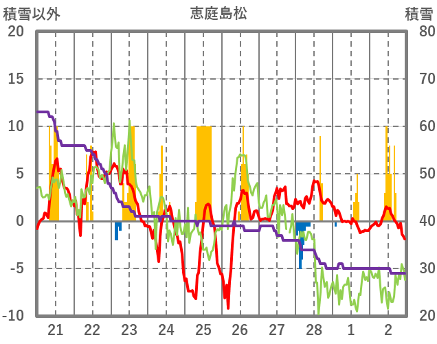 | 日 | 時 | 気温 | 降水 | 風向/風速 | 日照 | 積雪 | 降雪 |