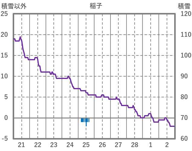 | 日 | 時 | 気温 | 降水 | 風向/風速 | 日照 | 積雪 | 降雪 |