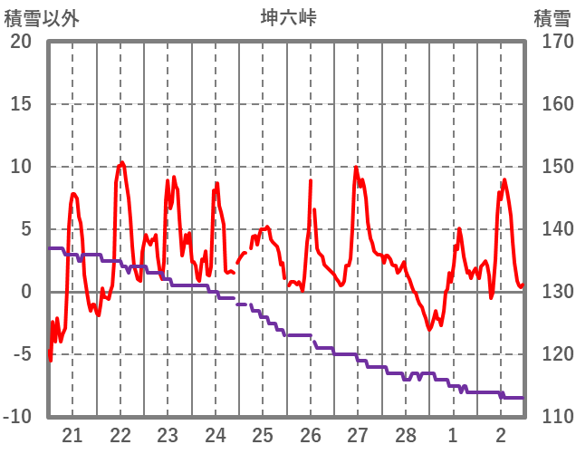 | 日 | 時 | 気温 | 降水 | 風向/風速 | 日照 | 積雪 | 降雪 |