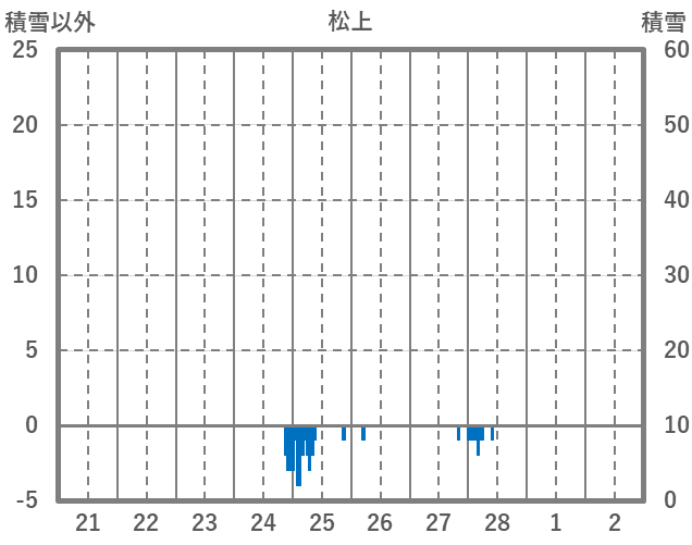 | 日 | 時 | 気温 | 降水 | 風向/風速 | 日照 | 積雪 | 降雪 |