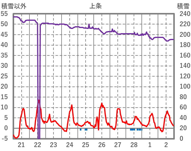 | 日 | 時 | 気温 | 降水 | 風向/風速 | 日照 | 積雪 | 降雪 |