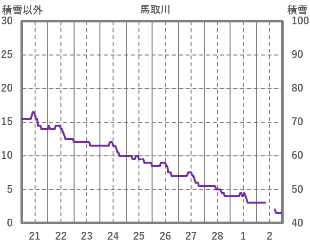 | 日 | 時 | 気温 | 降水 | 風向/風速 | 日照 | 積雪 | 降雪 |