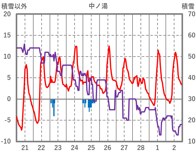 | 日 | 時 | 気温 | 降水 | 風向/風速 | 日照 | 積雪 | 降雪 |