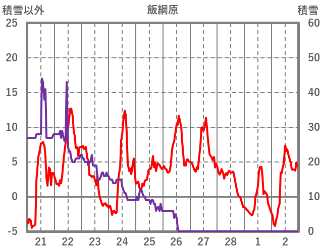 | 日 | 時 | 気温 | 降水 | 風向/風速 | 日照 | 積雪 | 降雪 |