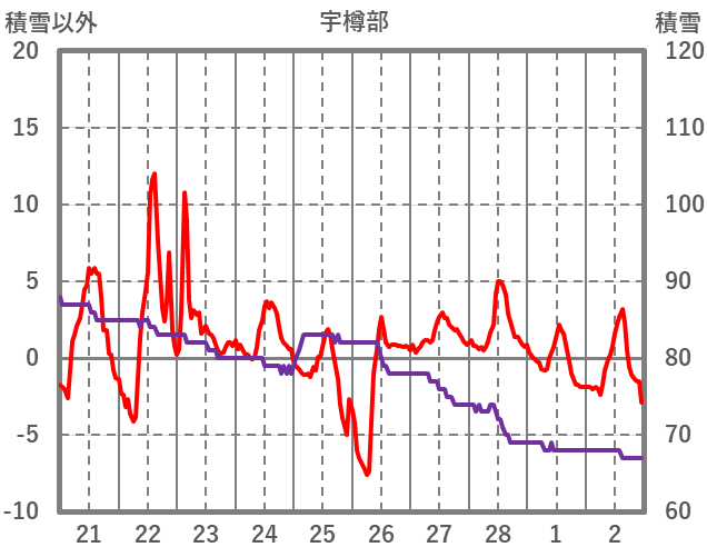 | 日 | 時 | 気温 | 降水 | 風向/風速 | 日照 | 積雪 | 降雪 |