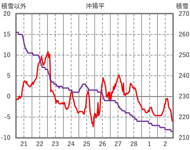 | 日 | 時 | 気温 | 降水 | 風向/風速 | 日照 | 積雪 | 降雪 |