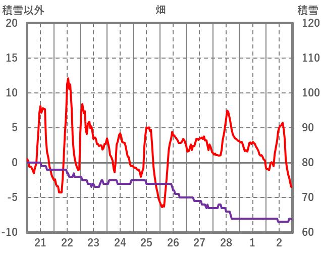 | 日 | 時 | 気温 | 降水 | 風向/風速 | 日照 | 積雪 | 降雪 |