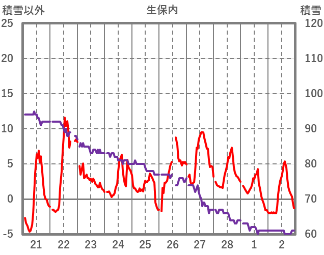 | 日 | 時 | 気温 | 降水 | 風向/風速 | 日照 | 積雪 | 降雪 |