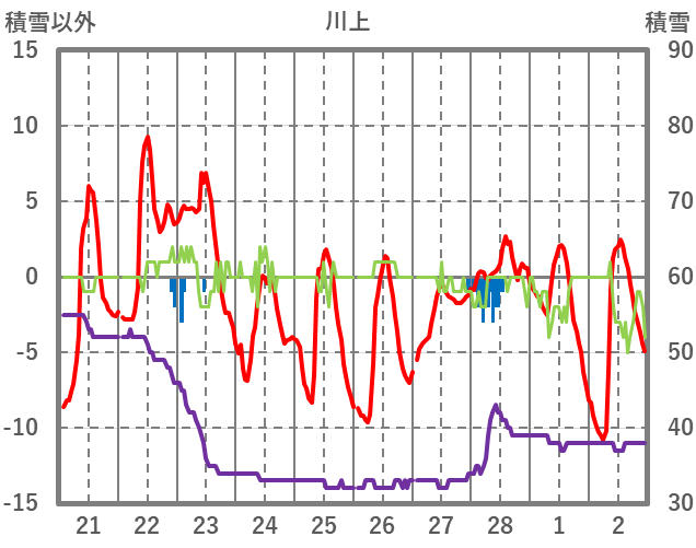 | 日 | 時 | 気温 | 降水 | 風向/風速 | 日照 | 積雪 | 降雪 |