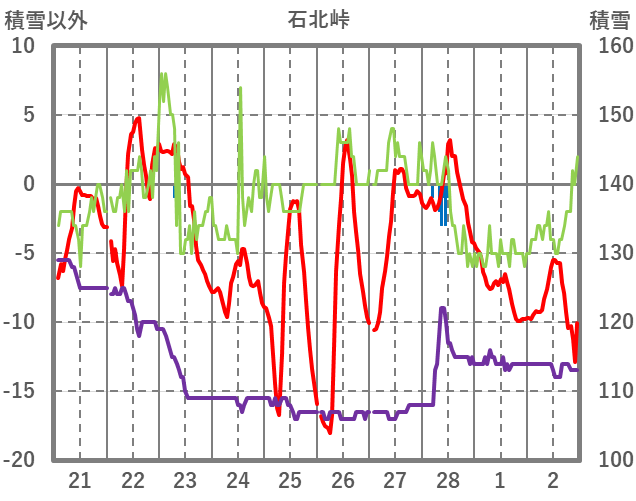 | 日 | 時 | 気温 | 降水 | 風向/風速 | 日照 | 積雪 | 降雪 |