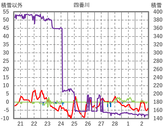| 日 | 時 | 気温 | 降水 | 風向/風速 | 日照 | 積雪 | 降雪 |