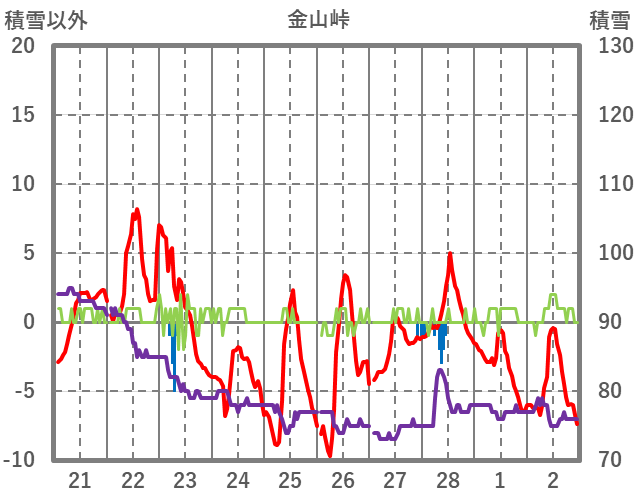 | 日 | 時 | 気温 | 降水 | 風向/風速 | 日照 | 積雪 | 降雪 |