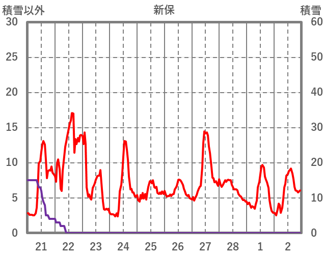 | 日 | 時 | 気温 | 降水 | 風向/風速 | 日照 | 積雪 | 降雪 |