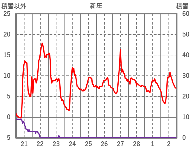 | 日 | 時 | 気温 | 降水 | 風向/風速 | 日照 | 積雪 | 降雪 |
