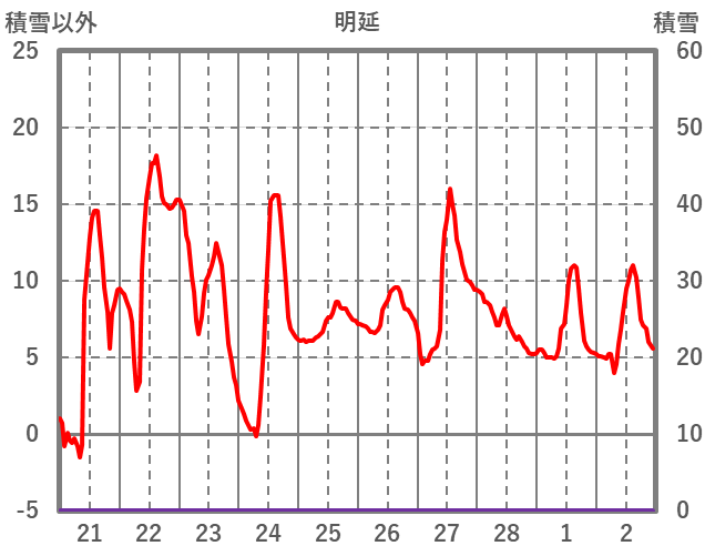 | 日 | 時 | 気温 | 降水 | 風向/風速 | 日照 | 積雪 | 降雪 |