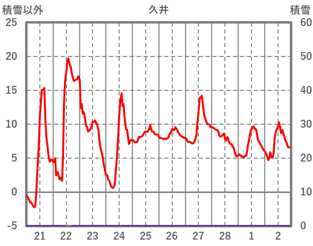 | 日 | 時 | 気温 | 降水 | 風向/風速 | 日照 | 積雪 | 降雪 |