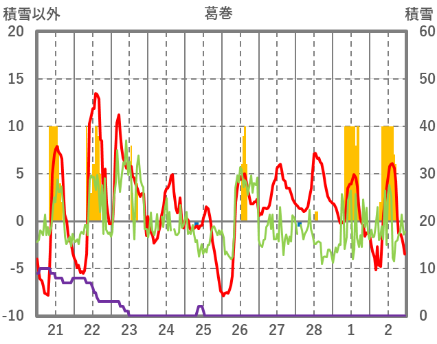 | 日 | 時 | 気温 | 降水 | 風向/風速 | 日照 | 積雪 | 降雪 |