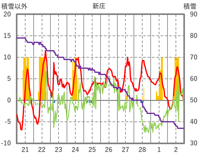 | 日 | 時 | 気温 | 降水 | 風向/風速 | 日照 | 積雪 | 降雪 |