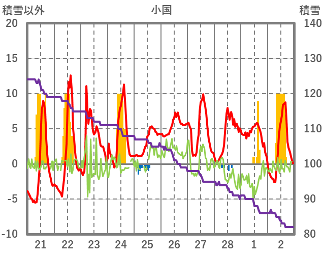 | 日 | 時 | 気温 | 降水 | 風向/風速 | 日照 | 積雪 | 降雪 |