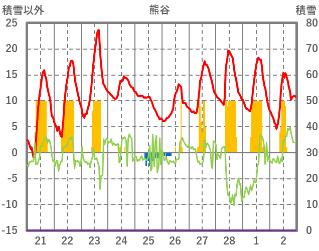 | 日 | 時 | 気温 | 降水 | 風向/風速 | 日照 | 積雪 | 降雪 |