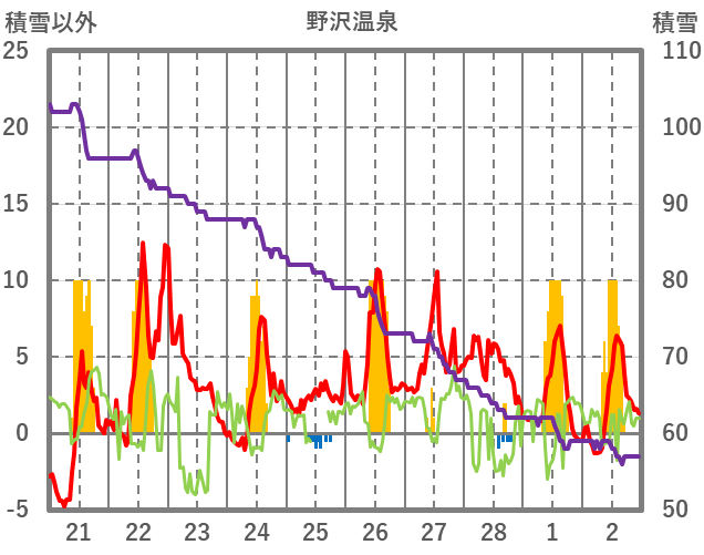 | 日 | 時 | 気温 | 降水 | 風向/風速 | 日照 | 積雪 | 降雪 |
