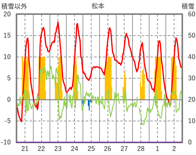 | 日 | 時 | 気温 | 降水 | 風向/風速 | 日照 | 積雪 | 降雪 |