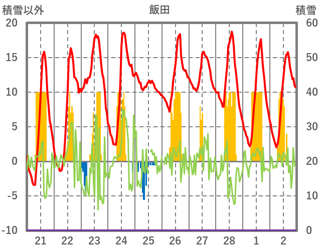 | 日 | 時 | 気温 | 降水 | 風向/風速 | 日照 | 積雪 | 降雪 |