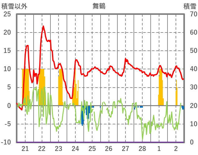 | 日 | 時 | 気温 | 降水 | 風向/風速 | 日照 | 積雪 | 降雪 |