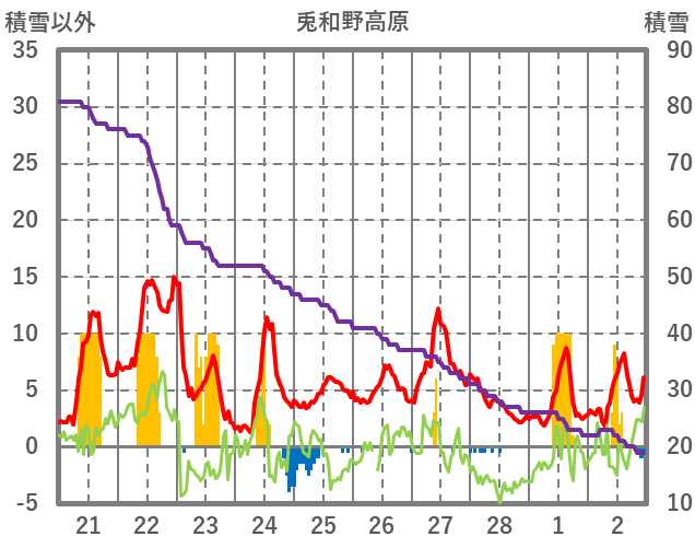 | 日 | 時 | 気温 | 降水 | 風向/風速 | 日照 | 積雪 | 降雪 |