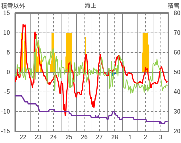 | 日 | 時 | 気温 | 降水 | 風向/風速 | 日照 | 積雪 | 降雪 |