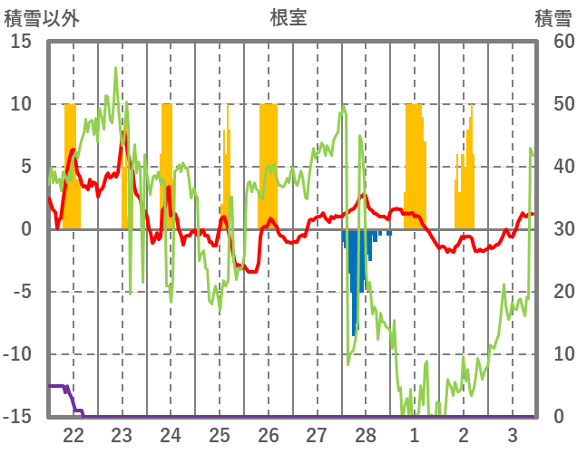 | 日 | 時 | 気温 | 降水 | 風向/風速 | 日照 | 積雪 | 降雪 |