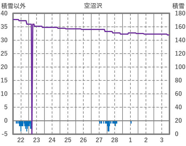 | 日 | 時 | 気温 | 降水 | 風向/風速 | 日照 | 積雪 | 降雪 |