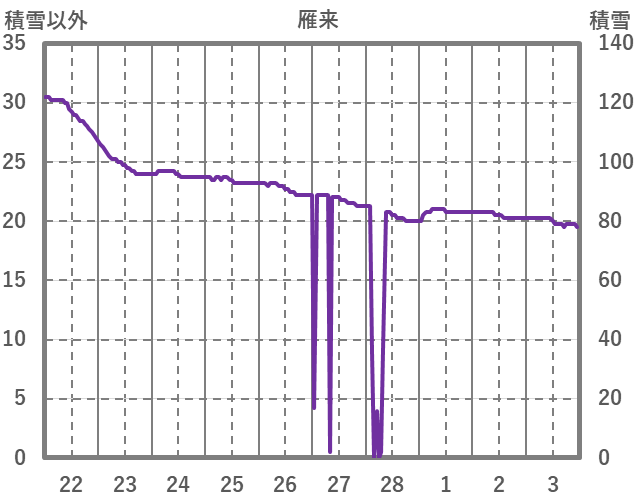 | 日 | 時 | 気温 | 降水 | 風向/風速 | 日照 | 積雪 | 降雪 |