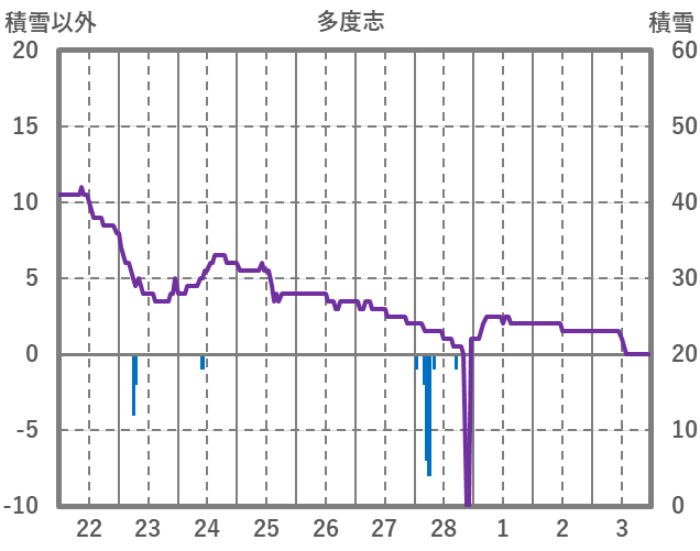 | 日 | 時 | 気温 | 降水 | 風向/風速 | 日照 | 積雪 | 降雪 |