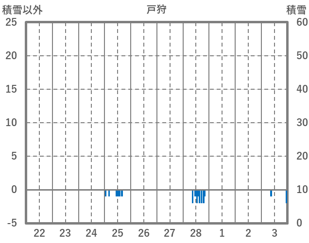 | 日 | 時 | 気温 | 降水 | 風向/風速 | 日照 | 積雪 | 降雪 |