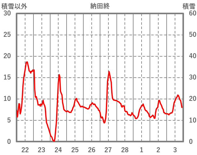 | 日 | 時 | 気温 | 降水 | 風向/風速 | 日照 | 積雪 | 降雪 |