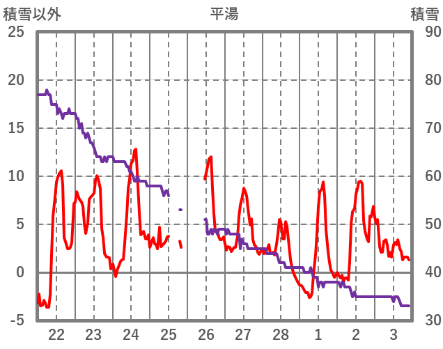 | 日 | 時 | 気温 | 降水 | 風向/風速 | 日照 | 積雪 | 降雪 |