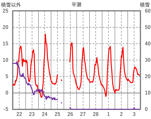 | 日 | 時 | 気温 | 降水 | 風向/風速 | 日照 | 積雪 | 降雪 |