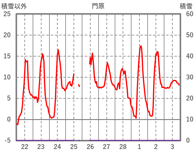 | 日 | 時 | 気温 | 降水 | 風向/風速 | 日照 | 積雪 | 降雪 |