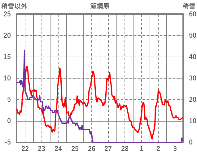 | 日 | 時 | 気温 | 降水 | 風向/風速 | 日照 | 積雪 | 降雪 |
