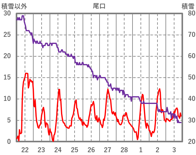 | 日 | 時 | 気温 | 降水 | 風向/風速 | 日照 | 積雪 | 降雪 |