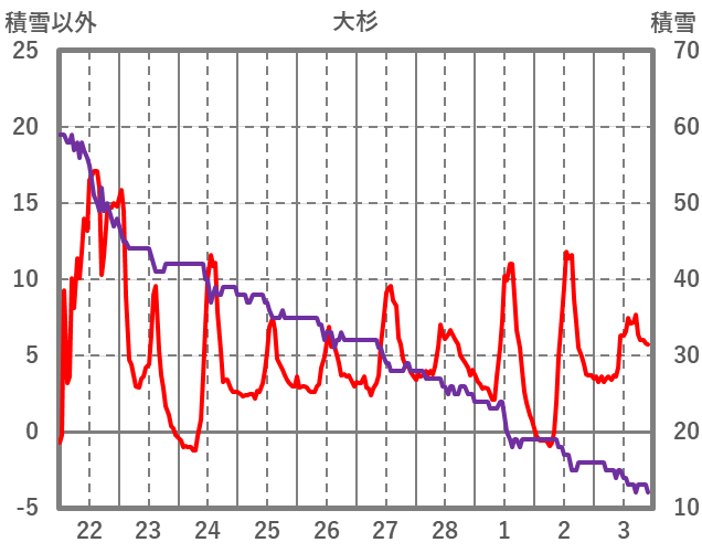 | 日 | 時 | 気温 | 降水 | 風向/風速 | 日照 | 積雪 | 降雪 |
