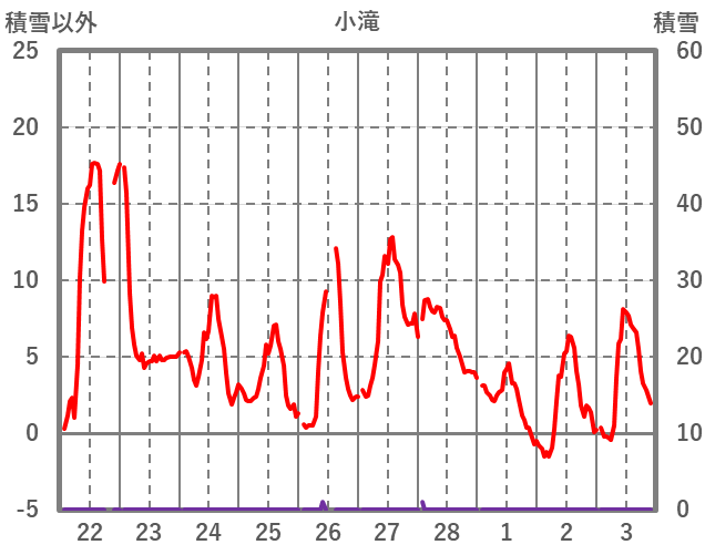 | 日 | 時 | 気温 | 降水 | 風向/風速 | 日照 | 積雪 | 降雪 |