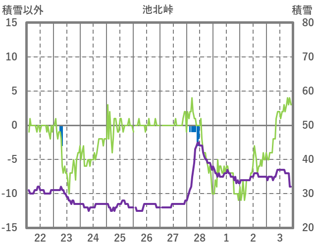 | 日 | 時 | 気温 | 降水 | 風向/風速 | 日照 | 積雪 | 降雪 |
